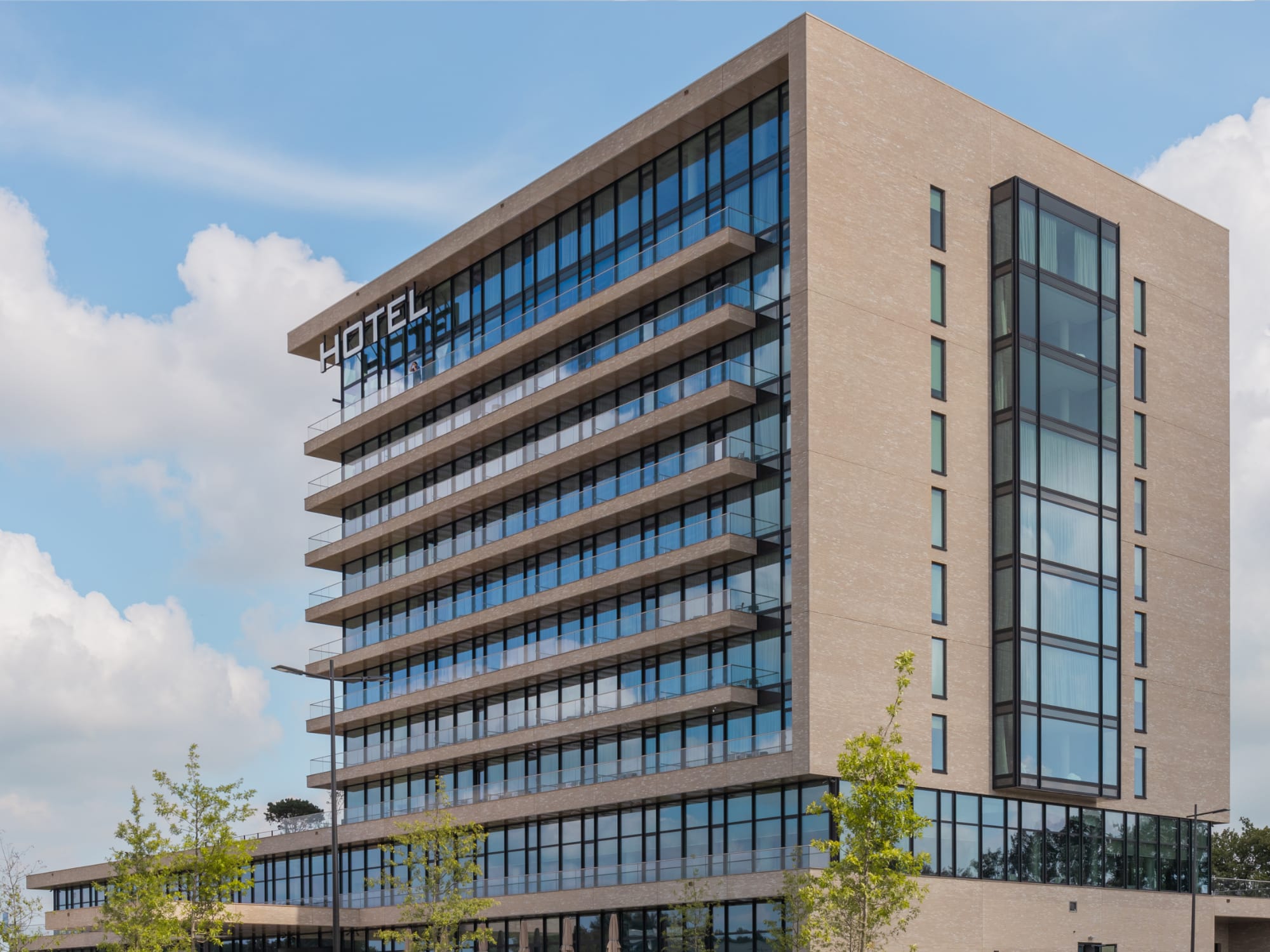 Aan de A1 bij Deventer werd in 2018 begonnen aan de bouw van het Van der Valk Exclusief hotel. Voor de nieuwbouw van dit hotel mocht Aluvo de kozijnen produceren en monteren. Tevens kregen wij de opdracht om de glazen balustrades te leveren. Dit Van der Valk Exclusief hotel telt maar liefst 10 verdiepingen. Dit hotel is het meest duurzame hotel van de Van der Valk keten tot nu toe.